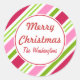 Brillantes, festivos, rayas de caramelo decoran a estos pegatinas de Feliz Navidad. Cambie el texto para personalizar estos pegatinas. Utilice estos pegatinas de menta para regalos, etiquetas de regalo, bolsas de regalo, paquetes, sobres, horneado, cocina, intercambio de galletas, Navidades, etc...El diseño es de arte original.