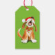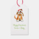 Cute canto la etiqueta de regalo de arte de perro en un brillante fondo verde. Personaliza con tus propias palabras, nombre o mensaje al revés lee Feliz feriado. Ideal para los regalos de sus Navidades a los amantes de los perros o animales. También haría grandes etiquetas para sus mascotas. Perro lindo pintado con acuarela y diseñado por Sarah Trett.