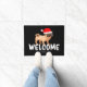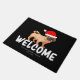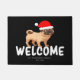 Un personalizado Navidades de pug marrón claro doormat para la temporada de vacaciones. Personalice fácilmente con su nombre y año de familia.