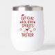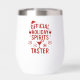 Cita: Pascua oficial de los Espíritus de Navidad. Texto rojo. Decorada con vasos de vino, gorra de Santa, cristal de cola y cristales de nieve,