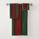 Baño de toallas de baño de tres tamaños decorativos y decoración de mobiliario de casa accesorio impreso con un ilustracion de diseño de arte gráfico de Navidades clásicos de las franjas verde y roja por la impresión The FabricSeal en la tienda a petición en Zazzle.com #ZazzleMade ©️ Original. https://www.zazzle.com/store/thefabricseal Estos hermosos tonos de color están inspirados en la extensa paleta de colores de la temporada de invierno y se pueden usar y recibir en cualquier época del año. He establecido 20 grupos de 5 combinaciones de colores que han sido listados en algunos de los productos de venta más populares en nuestra tienda, que pueden transferirse a casi cualquiera de los miles de productos de alta calidad en Zazzle durante los Procesos de Personalización y Edición. #BohoFashion #Accessories #BohoStyle #FashionInspiration #BohemianVibes #UniqueDesigns #ColorfulAccessories #StandOut #BohoChic #ZazzleMade #Zazzle #FineArt #OriginalDesign #Ilustracion #MerryChristmas #Winter #WinterSeason Convierta su cuarto de baño en su propio oasis personal, con una toalla de personalizado perfecta para secarse con estilo. El juego de toallas es un gran regalo para muchas ocasiones. Las tres toallas de baño también se pueden adquirir por separado. Haga clic en Personalize It y, a continuación, utilice la herramienta Editar el diseño para obtener más opciones de personalización si fuera necesario, incluyendo la transferencia de este diseño a otros productos de Zazzle. Además, mientras en la página del producto tiene la opción de hacer clic en Editar, Cambiar y, a continuación, Examinar mi biblioteca para ver más de mil de nuestros fantásticos diseños originales de arte y fondos de color sólido para elegir cuando necesite una imagen de apariencia diferente para esta elección de producto. Muchas gracias por elegir nuestra tienda online. Agradecemos su apoyo. Disfruta de tu experiencia de compras. Cindy y Jeff