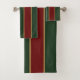 Set de toallas de baño de tres tamaños decorativos y decoración de mobiliario de casa accesorios impresos con un ilustracion de diseño de arte gráfico de Navidades clásicos verde y rojo con tragaluz de oro por The FabricSeal print on demand shop en Zazzle.com #ZazzleMade ©️ Original. https://www.zazzle.com/store/thefabricseal Estos hermosos tonos de color están inspirados en la extensa paleta de colores de la temporada de invierno y se pueden usar y recibir en cualquier época del año. He establecido 20 grupos de 5 combinaciones de colores que han sido listados en algunos de los productos de venta más populares en nuestra tienda, que pueden transferirse a casi cualquiera de los miles de productos de alta calidad en Zazzle durante los Procesos de Personalización y Edición. #BohoFashion #Accessories #BohoStyle #FashionInspiration #BohemianVibes #UniqueDesigns #ColorfulAccessories #StandOut #BohoChic #ZazzleMade #Zazzle #FineArt #OriginalDesign #Ilustracion #MerryChristmas #Winter #WinterSeason Convierta su cuarto de baño en su propio oasis personal, con una toalla de personalizado perfecta para secarse con estilo. El juego de toallas es un gran regalo para muchas ocasiones. Las tres toallas de baño también se pueden adquirir por separado. Haga clic en Personalize It y, a continuación, utilice la herramienta Editar el diseño para obtener más opciones de personalización si fuera necesario, incluyendo la transferencia de este diseño a otros productos de Zazzle. Además, mientras en la página del producto tiene la opción de hacer clic en Editar, Cambiar y, a continuación, Examinar mi biblioteca para ver más de mil de nuestros fantásticos diseños originales de arte y fondos de color sólido para elegir cuando necesite una imagen de apariencia diferente para esta elección de producto. Muchas gracias por elegir nuestra tienda online. Agradecemos su apoyo. Disfruta de tu experiencia de compras. Cindy y Jeff