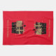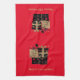 Esta toalla de cocina se muestra en rojo personalizado con una pila corta de paquetes de Navidades de color negro y dorado junto con un texto de color dorado mate de Feliz Navidad. Personalizar este artículo o compra como se muestra.