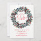 Elegante invitación de vacaciones con una corona de navidades de pino. Haga girar nuestra invitación única para ver una coincidencia para un toque especial. Invitación perfecta para una temporada de vacaciones para una reunión de barrio, fiesta de oficina, fiesta de cócteles de oficina o fiesta de navidades,
