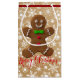 Navidades pan de jengibre hombre y nieve en la bolsa de papel