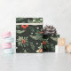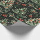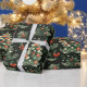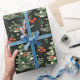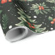 Deliciosos Navidades envueltos en papel con árboles vibrantes, bayas rojas y exuberante vegetación en un fondo oscuro, perfecto para agregar alegría a las experiencias de regalos de las vacaciones.