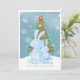 Navidades Conejo Conejo Conejo Mirando el Árbol en Nieve tarjetas de felicitación planas personalizadas de Ricaso - una deliciosa tarjeta de vacaciones acuarela con una escena familiar de padre e hijo... o abuelo... u otro adulto con un conejo pequeño.