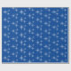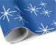 Navidades de papel envolvente con motivos de copos de nieve, con fondo azul y copos de nieve blancos. Ideal para añadir un toque de invierno a tus regalos de vacaciones.