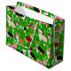 Perros de Corgi con colores de caldo, rojo y trío, vestidos con trajes festivos, sombreros de Santa y sudaderas de argyle con un patrón de adornos navideños dispersos.
