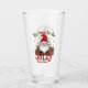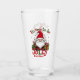 Navidades Cute Jolly Santa Holiday Nombre personalizado Tumblers Drinking Glass presenta el texto "Es momento de ser alegre" en la tipografía moderna de escritura roja y verde acentuada con un lindo gnomo Santa con regalos de Navidades y personalizado con tu nombre debajo. Perfecto como regalo para la familia y los amigos para las vacaciones. Creado por Evco Studio www.zazzle.com/store/evcostudio