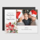 Magnífico diseño floral de acuarela de vacaciones con flores de Navidades rojos y blancos y bayas huecas con plantilla de fotos y campos de texto editables.
