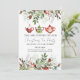 Celebre la temporada con esta encantadora invitación a la fiesta de Navidades de acuarela con tetera roja festiva, vegetación, pinecones y bayas. Una invitación perfecta para las reuniones de té de vacaciones, fiestas de tarde o acogedoras celebraciones de invierno. Personalice los detalles de su evento con un toque de temporada delicioso.