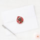 Pegatinas navideñas con el ilustracion de una linda sonriente niña o niño negro feliz, el bebé está usando ropas rojas y blancas y sosteniendo un regalo; con plantilla de texto editable para tu nombre o mensaje, Navidades diseño de vacaciones