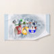 Los amantes de las toallas de arte de la piscina apreciarán la decoración del cuarto de baño.