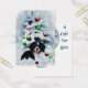 Un adorable cachorro tricolor está posando bonito frente a un árbol de Navidad adornado en un bosque. Maravillosos regalos de vacaciones para los dueños de Cavalier. Tarjetas de navidad, sellos postales, tazas de vacaciones y más. Queremos agradecer a Jerry y Sue en California por permitirnos el privilegio de usar su Cavalier Dakota como base de nuestro trabajo artístico.