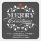 Etiquetas de sellado de sobres cuadradas con dirección de retorno para tarjetas de Navidades de vacaciones — Elegante estilo de pizarra vintage Diseño navideño para tarjetas de felicitación e invitaciones para fiestas de temporada. Diseño de flor blanca y hueca con estilo retro de letterpress y tipografía decorativa. Añadir el nombre de su familia o el texto personalizado del mensaje. Una manera contemporánea, clásica, moderna y elegante de enviar a sus amigos y familiares los modernos y felices saludos de las vacaciones de invierno con un encanto tradicional único pero rústico. Tipografía de navidades - Elegante colección Holly Chalkboard