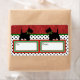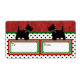 Pequeños territorios escoceses adorables con collares de coronas huecas que te traen regalos de Santa en estos coloridos Navidades de polka rojo y verde, negro y blanco. Etiquetas de animales de vacaciones.