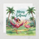 Celebra las vacaciones con un toque juguetón en el golf! Esta acuarela tiene un flamenco rosa vestido de golfista, con un sombrero de Santa, en un frondoso campo de golf decorado para Navidades. Las calles están adornadas con flamencos y las luces de las palmeras crean un ambiente divertido y festivo. El texto escrito a mano "Feliz Navidad" agrega un toque alegre. Perfecto para los amantes del golf, los aficionados de Florida o cualquier persona a la que le gusten los diseños extravagantes de las vacaciones.