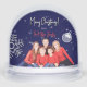 Este hermoso Navidad y el globo de nieve de Año Nuevo muestra a toda tu familia con un fondo azul nocturno. Personalizar con una foto familiar de fondo blanco ( el fondo será reemplazado por transparencia). Todos los textos están escritos con tipografía refinada y son personalizables. Algunas decoraciones blancas: copos de nieve, estrellas brillantes y brillantes al fondo. ¡Para Navidades muy personales y saludos de Año Nuevo!