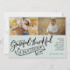 Diseño de collage de fotos familiares Tarjetas de vacaciones de Navidades de diseño de aves Boho verde de tipografía grandiosa, agradecida, bendita. Agrega dos de tus fotos familiares favoritas del año, tu saludo y nombre de familia. Esta carta de Navidades se revierte a un lindo patrón de pájaros en la parte de atrás.