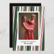 Eleva tus saludos de vacaciones con la elegante sencillez de los Navidades de fotos de rayas negras y la tarjeta de vacaciones. Este minimalista diseño de rayas verdes y rojas tiene espacio para tu foto favorita y el reverso de la tarjeta es para tu mensaje personal. Esta impresionante tarjeta capta la esencia de la temporada con su atemporal paleta de colores y una estética limpia y moderna. El lienzo perfecto para mostrar tu atesorada foto de vacaciones, seguro que hará una impresión duradera en amigos y familia. Ya sea que envíe saludos de temporada o que celebre Navidades, esta versátil tarjeta elevará su correspondencia de vacaciones.