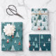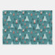 Navidades Santa en las hojas de papel de envolvimiento del bosque de nieve, conjunto de tres para asombrosos paquetes de regalo. Destacar con estos diseños.
