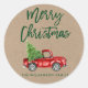 Camión de color rojo de color del pincel de Kraft con árbol de Navidad - Sello para sobres de nombre de familia navideña