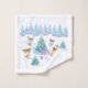 Toalla puesta con las palabras: Paz, amor y alegría. Diseñado con una escena de Navidades caprichosos. Felices animales del bosque bailando alrededor de un árbol de Navidad decorado. Diseño acuático festivo.