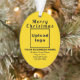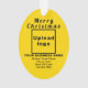 Feliz Navidad! Ornamento acrílico con los textos de la Feliz Navidad, el nombre de su negocio o empresa, logotipo, dirección y número de teléfono. Los diseños son textos negros sobre fondo amarillo y sobre forma oval. Ornamento para decorar el árbol de Navidad en tu tienda, tienda u oficina. Ornamento para saludar visualmente a sus clientes esta temporada de vacaciones y para anunciar su negocio o promocionar su marca. Personalizar y úselo para crear conciencia de marca. Compruebe la apariencia después de cargar el logotipo y escribir textos. Si la apariencia le resulta agradable, puede realizar su pedido ahora. Si necesita cambiar el tamaño y mover el logotipo y los textos para que encajen en este ornamento, por favor cambie la herramienta de diseño. También puede realizar otros cambios de acuerdo con sus preferencias en la herramienta de diseño, como cambiar el color de los adornos, el color del tipo de letra y el estilo del tipo de letra. Feliz Navidad! Te deseo más ventas esta temporada de vacaciones.