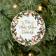 Elegantes Navidades de fotografía de familia con bayas y estrellas monográficas rondas de escarcha inicial para uso familiar o de pequeñas empresas regalos de vacaciones y favores de fiesta.