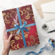 Envoltura de regalo para los Navidades bonitos. Tonos rojos profundos con un diseño de oro falso para la temporada de vacaciones. Todos tus regalos se verán magníficos. Así que por debajo del árbol.