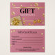 Diseño festivo glamoroso de alta calidad con caja de regalo de oro de lujo, arco y cinta con estrellas doradas y bola de árbol de Navidad en un sencillo fondo rosa rosa pastel. Este elegante y moderno certificado de regalo es perfecto para su pequeña empresa o para regalar a amigos y familiares, especialmente para Navidades de vacaciones.