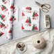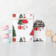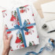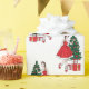 Vintage patrón de Navidad con un chica vestido de Navidades rojos y un árbol con regalos de Navidad.