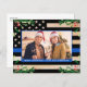 Envía saludos navideños de Feliz a amigos y familia con esta tarjeta única de Navidades de la policía de la Línea Azul - Bandera estadounidense con los colores de la bandera de la policía, negro y azul moderno con hojas y bayas huecas en un fondo de madera. Personaliza tu foto y nombre de familia favoritos. Estas postales de navidad barata necesitan ser enviadas por correo como postales sobredimensionadas, por lo que pueden incurrir en cargos de franqueo estándar, pero no necesitan un sobre o una etiqueta de dirección de retorno. DERECHOS RESERVADOS © 2020 Judy Burrows, Black Dog Art - Todos los derechos reservados. Navidades de policía de presupuesto tarjeta foto bandera azul delgada