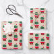 Navidades de novedad envolviendo hojas de papel con un patrón de cactus en trajes de Santa sobre un fondo marrón arena.