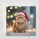 Cute Exótico gato Shorthair vestido con un sombrero de Santa.