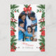 Feliz postal navideño con una foto familiar, deseos de Navidades, y dirección receptora adornada con decoraciones florales de Navidades. Fácilmente personalizar con tu foto familiar, colores y texto haciendo clic en "personalizar esta plantilla". Si tiene algún problema al ajustar la foto pulse sobre editar usando la herramienta de diseño y le llevará a un diseñador en línea donde puede cambiar y cambiar las cosas e incluso cambiar el tipo de letra. Esta tarjeta postal es adecuada para la temporada de Navidades, una buena manera de enviar cálidos deseos a tu familia y amigos.