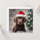 Un cachorro de chocolate con un sombrero de Santa.