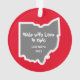 Las líneas generales del estado de Ohio, un fondo de hojas de rockeye, un cardenal (nuestro ave estatal) y las propias nueces de rockeye adornan este animado adorno navideño de Ohio. Deje el mensaje "Hecho con Amor en Ohio" en la parte de atrás o incluya una nota rápida propia. Incluya su apellido y el año, y tiene un aguijón que su destinatario adorará en los años venideros. Foto y diseño de Amanda Renee, CtrlZ Diseño Digital Todos los elementos usados con permiso. Buqukeyes hechos por Amanda.