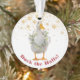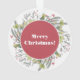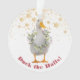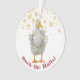 Un lado de este original adorno tiene un pato de piel blanca con una vegetación acuática y una corona de bayas. El otro lado tiene una corona de color agua de bonito con el mensaje "Feliz Navidad". Todas las copias pueden cambiarse y personalizarse según desee utilizando la herramienta personalizar.