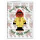 Esta tarjeta de Navidades personalizados está decorada por un lado con un bombero de juguete negro. El reverso está decorado con una imagen de Santa Claus llevando su bolsa de mercancía, y se puede personalizar con nombres, fechas, etc.