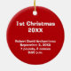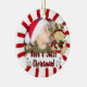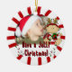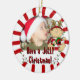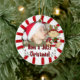 Un bastón de caramelo rayaba un adorno de porcelana redonda con un bebé que llevaba negras de reno y luces de vacaciones y un texto que dice "¡Ten Navidades de jalea!" que puedes fácilmente personalizar antes de pedir con una foto y otro texto.