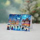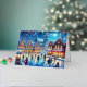 Magnífica acuarela navidades de invierno pueblo y escena de nieve con patinaje sobre hielo de la gente y muchas luces de navidades