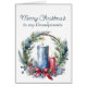Feliz deseo navideño para tus abuelos con una cita motivadora y cálidas velas y guirnaldas de color agua