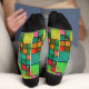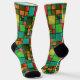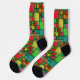 Calcetines artísticos con un divertido patrón geométrico abstracto en colores verdes y rojos, inspirados en ventanas de vidrio con plomo. Puede escalar, arrastrar y girar el patrón si lo desea. Hermoso para Navidades.