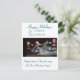 Celebra la temporada de fiestas con esta tarjeta de saludo única y caprichosa! La parte delantera de la tarjeta incluye un alegre Chassid bailando con tres individuos vestidos con disfraces de Santa Claus. Esta deliciosa mezcla de imágenes culturales y de vacaciones le da un toque de diversión y alegría.
