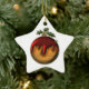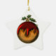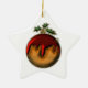 Un adorno navideño en forma de estrella para tu árbol de Navidad con un tradicional pudín de ciruelas rojas y doradas, con un sorbo de holly sentado encima.