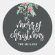 Elegantes pegatinas con bayas acuáticas y follaje y dice "Feliz Navidad" en un elegante y moderno guión.