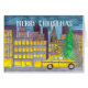 Navidades en la ciudad. acuarela pintada a mano. El coche está separado del fondo para poder cambiar su posición. El versículo de la parte delantera y el tipo de letra también se pueden personalizar para crear una tarjeta de vacaciones de clase.
