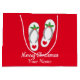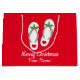 Navidades en julio de la linda playa flip flops bolsa de regalo. Llena de favores de fiesta, regalos y regalos. Pequeños, medianos y grandes tamaños. Bolsas de personalizable con tiras con el nombre y el saludo de feriado. Color rojo o personalizado. Excelente para amigos, familia, compañero de trabajo, jefe, empleado, etc.